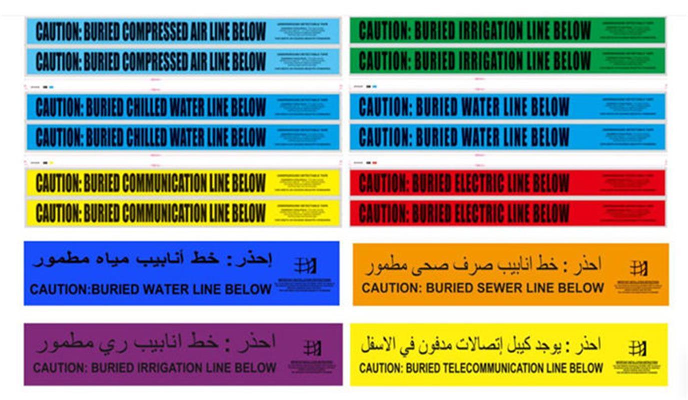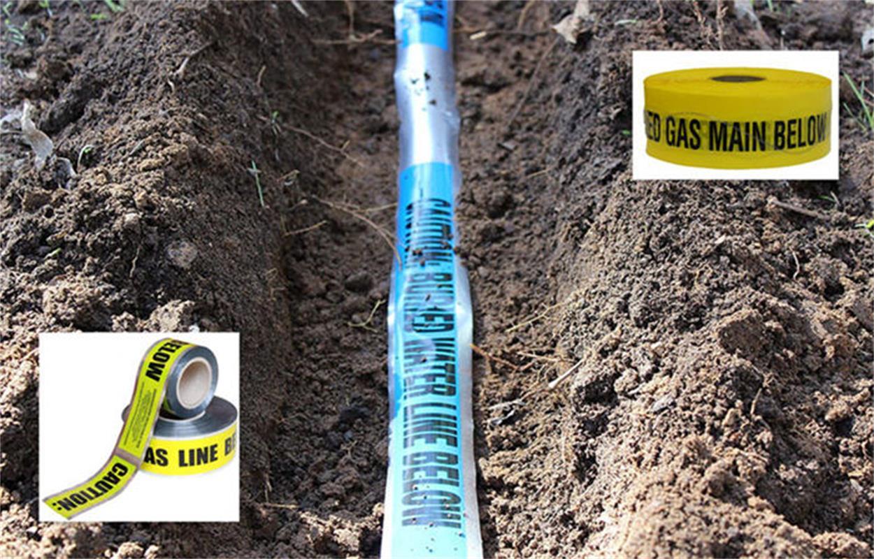 Le ruban d'avertissement souterrain détectable est un mélange spécialement stratifié de PET/foil/poly.Ce mélange étonnant (avec du polyester) offre des caractéristiques de résistance exceptionnelles par rapport aux autres rubans d'avertissement détectables de type polyéthylèneLe message noir gras sur son fond codé par couleur APWA est traité de manière à ne pas se dégrader ou s'estomper lorsqu'il est exposé à des alcalis, des acides ou tout autre élément destructeur sous terre.